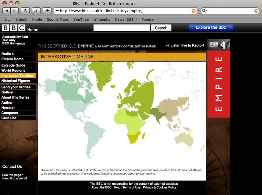 'Empire' was a 90-part radio show about the British Empire, broadcast on BBC Radio 4. The project involved the creation of a website used to supplement the show and give a detailed synopsis of each episode.